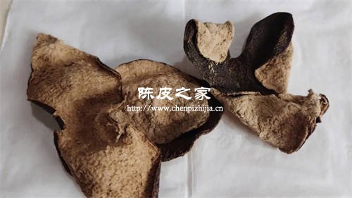 柑橘皮的边缘部分含有更多的果胶类物质,因此其收缩更加明显,陈皮的卷曲现象就主要出现在边缘部分。